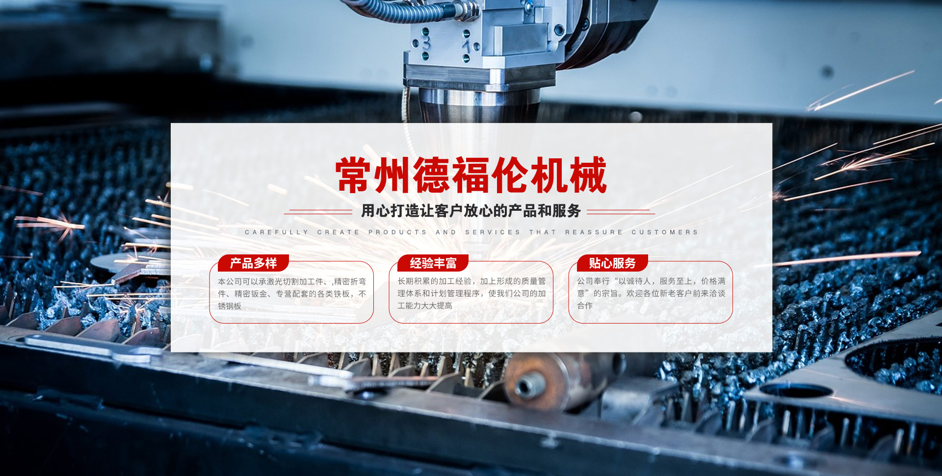 常州德福倫機(jī)械有限公司成立于2014年12月19號,位于江蘇省常州市武進(jìn)區(qū)遙觀鎮(zhèn)建農(nóng)村劍童路56號西門;公司配備;1萬瓦通K激光切割機(jī)1臺,6千瓦領(lǐng)C激光切割機(jī)1臺;機(jī)器行程6米*2.2米,切割不銹鋼50mm,碳鋼30mm;300噸大型數(shù)控折彎機(jī)。精密焊接機(jī)器數(shù)臺。本公司可以承激光切割加工件、,精密折彎件、精密鈑金、專營配套的各類鐵板,不銹鋼板。長期積累的加工經(jīng)驗,加上形成的質(zhì)量管理體系和計劃管理程序,使我們公司的加工能力大大提高,滿足客戶所需,是我們公司的目標(biāo)!公司奉行“以誠待人,服務(wù)為上,價格滿意”的宗旨。歡迎各位領(lǐng)導(dǎo);老總前來洽談合作!